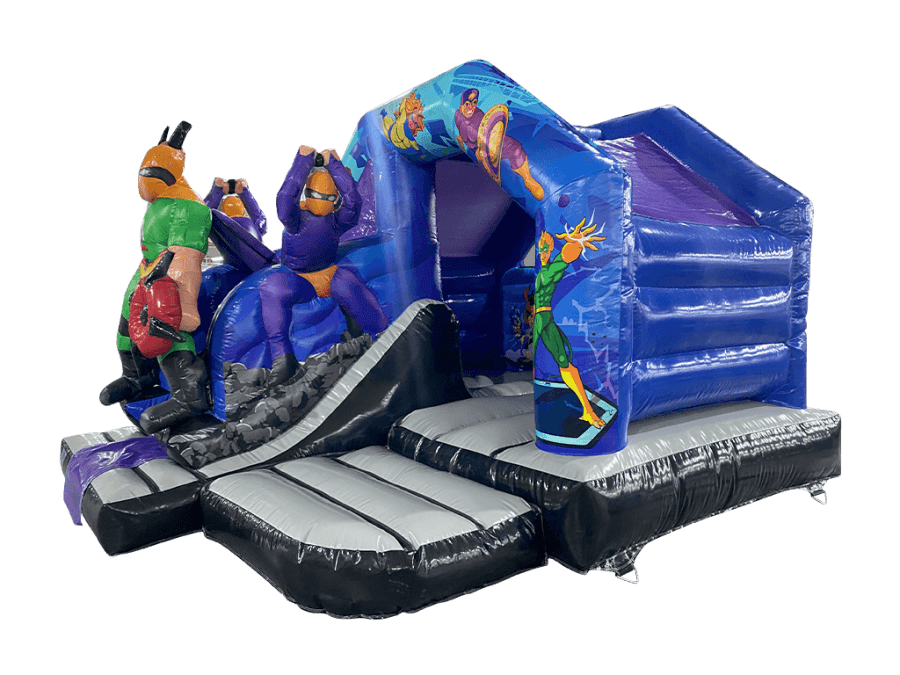 Looking for bouncy castle hire 12ft by 16ft 3D Superhero Front Slide in huddersfield, holmefirth, elland, halifax, batley, brighouse, dewsbury? We proudly deliver to all these locations, ensuring your special occasion is hassle-free. Our team handles delivery, setup, and removal, allowing you to focus on making magical memories with your little superheroes.