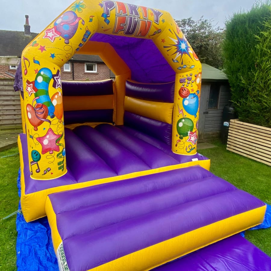 Don’t miss out on the opportunity to make your event spectacular. Contact us today to book the Yellow Purple Party Castle and experience premier Bouncy Castle Hire in Huddersfield, Holmfirth, Elland, Halifax, Brighouse, Mirfield, Batley, Dewsbury. 🎊