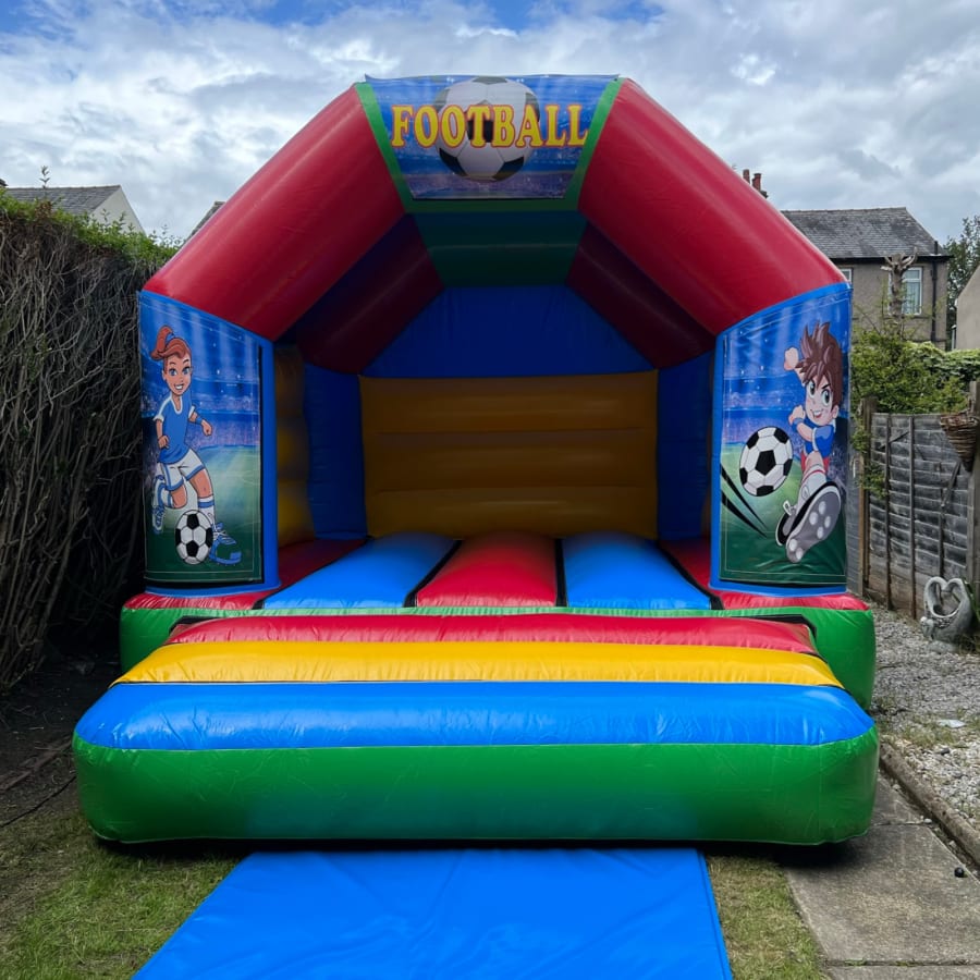 We are proud to provide bouncy castle hire in Huddersfield, Holmfirth, Elland, Halifax, Brighouse, Mirfield, Batley, Dewsbury. Our services ensure a seamless experience, from booking to installation, leaving you free to enjoy the event. Our team is dedicated to delivering a stress-free, fun-filled day with our Football Bouncy Castle.