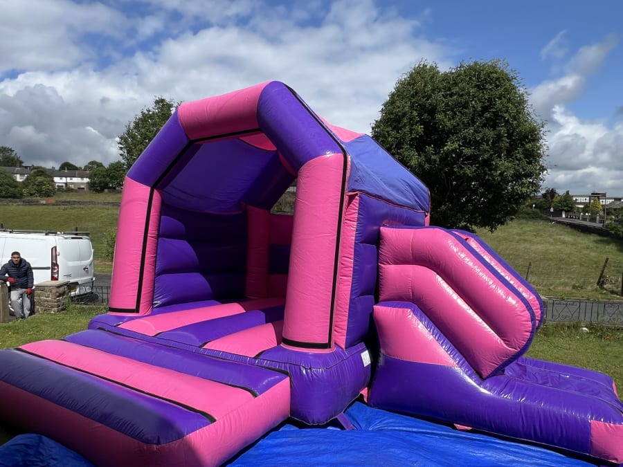 Turn your party into a fun-filled adventure with our vibrant Pink & Purple Slide Bouncy Castle – perfect for birthdays, family events, school fairs, and more! Featuring a bright and bold colour scheme, a built-in slide, and a safe enclosed roof, this inflatable guarantees hours of excitement for the little ones.